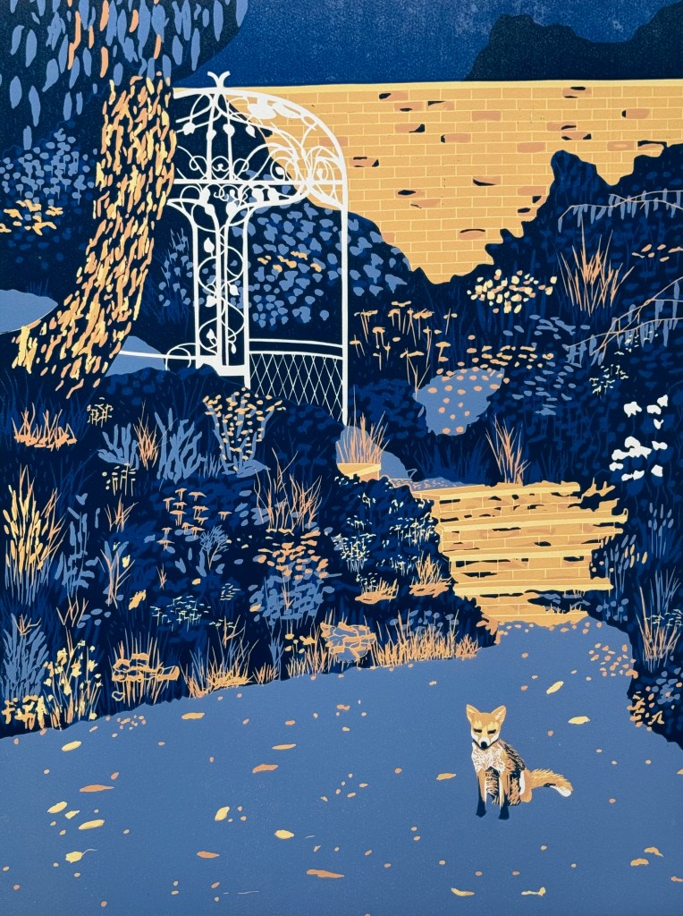 Laura’s Garden (Night), 2024, Reduction Woodcut, 60.5 x 45.5cm, Variable Edition of 7