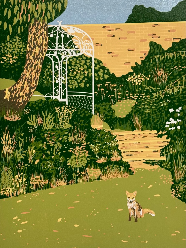 Laura’s Garden (Day), 2024, Reduction Woodcut, 60.5 x 45.5cm, Variable Edition of 7